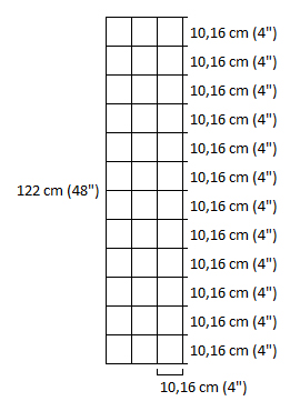 - 10,16 cm (2”) mellem de vandrette og lodrette tråde